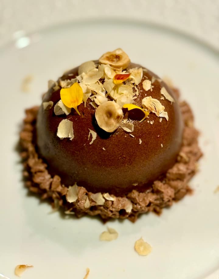 Oplev Timut-menuen, en komplet smagsrejse med en delikat forret, en kammuslingecarpaccio med piemontesiske hasselnødder, et andebryst ledsaget af kartoffel- og butternutmousseline og til sidst en dessert, der kombinerer hasselnød og chokolade i raffinerede teksturer.