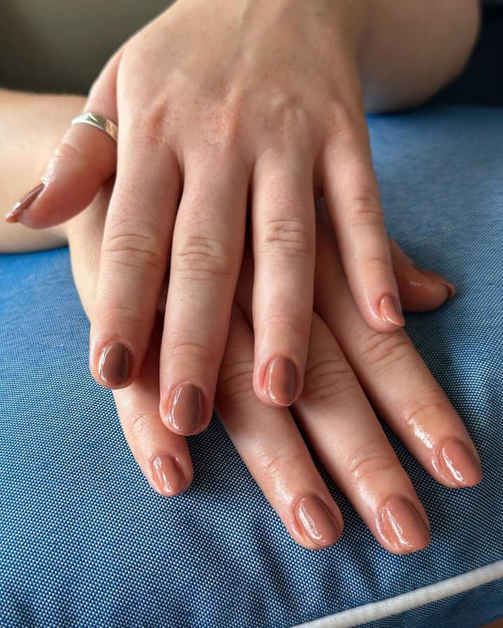 Langvarig manicure med en blank, glat finish.