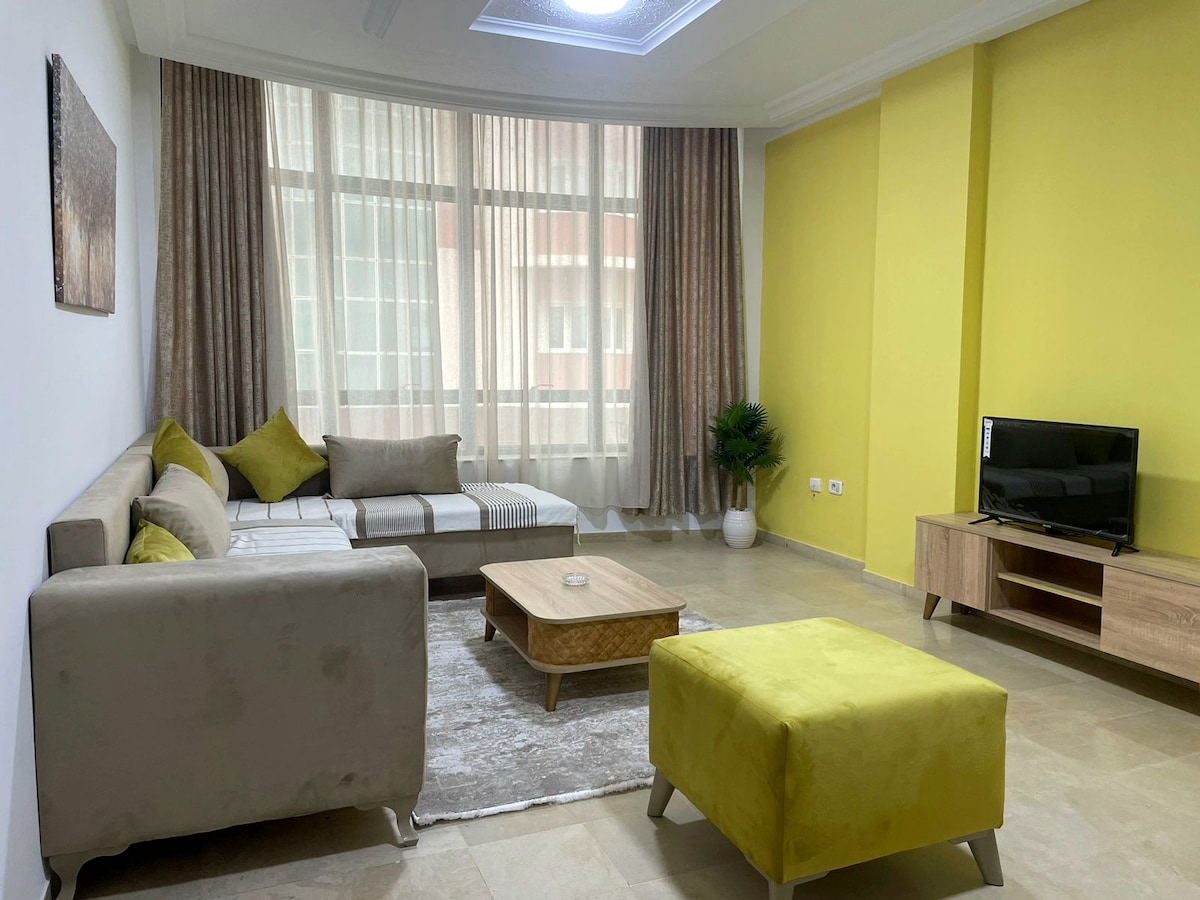 Profitez d'un appartement élégant et spacieux, aux cœur de Sfax, à cité Ennasria à côté de la médina de Sfax. Le logement est composé d'un salon spacieux, une cuisine bien équipée, avec séchoir extérieur privé, deux chambres avec rangements; une avec un lit double et terrasse charmante donnant sur le passage piéton allant vers la médina, et l'autre avec deux lits séparés, et enfin une salle de bain avec baignoire, wc et lavabo