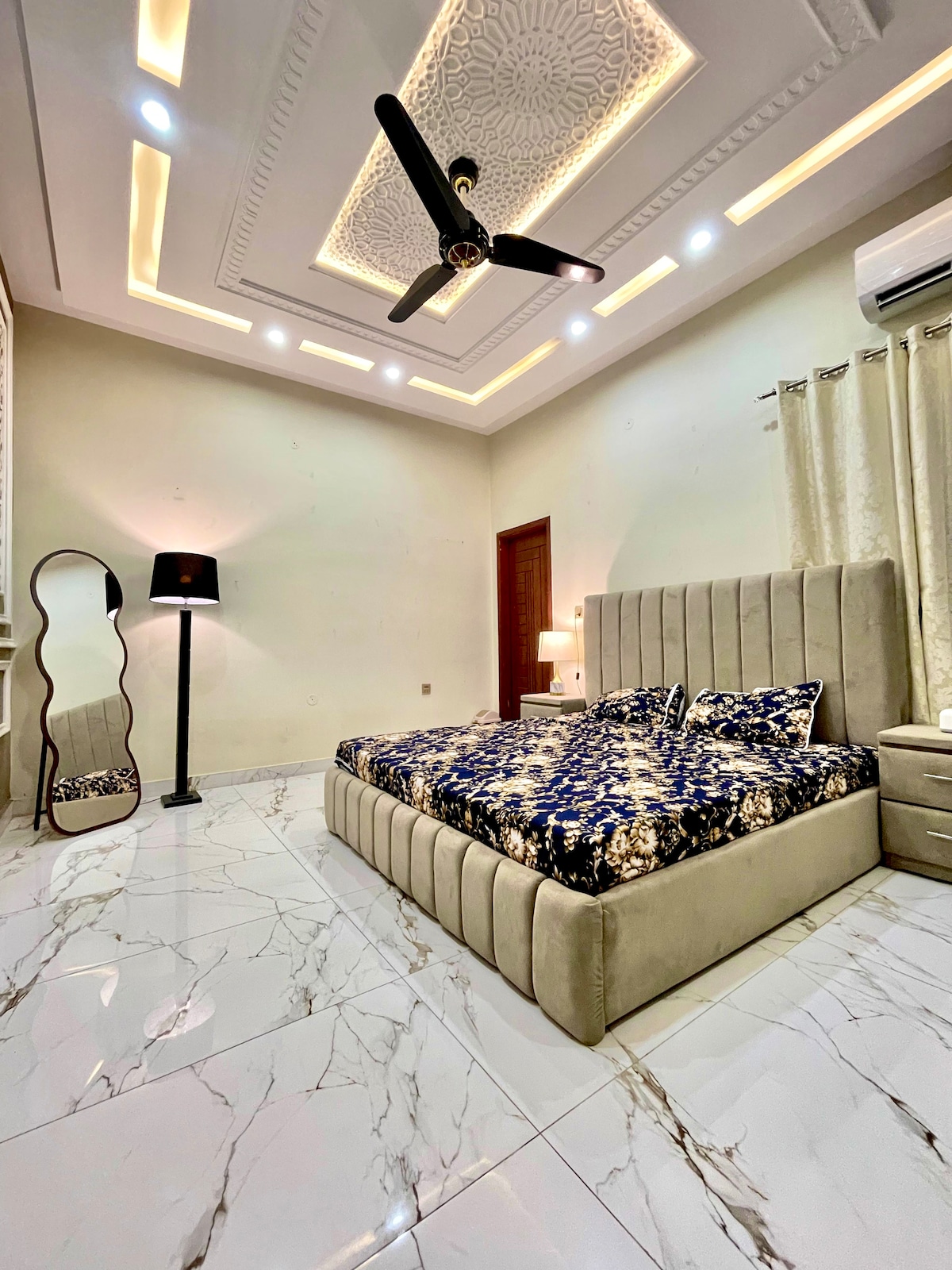 Svævende seng, stjernelys i loftet og elevatoradgang – Multans mest æstetiske ophold med 1 seng. Escape Aura – luksusophold i Buch Villas, Multan Oplev Multans første æstetiske lejlighed med et stjernebelyst loft, svævende seng og elegant mørk-lys-tema. Nyd fuld privatliv med ind- og udtjekning uden vært. Beliggende i Buch Villas, kun få skridt fra Imtiaz Mega Mart, Universal Cinema og Buch International Hospital. Kun familie og bekræftede gæster. Ingen ugifte par/ingen fester.