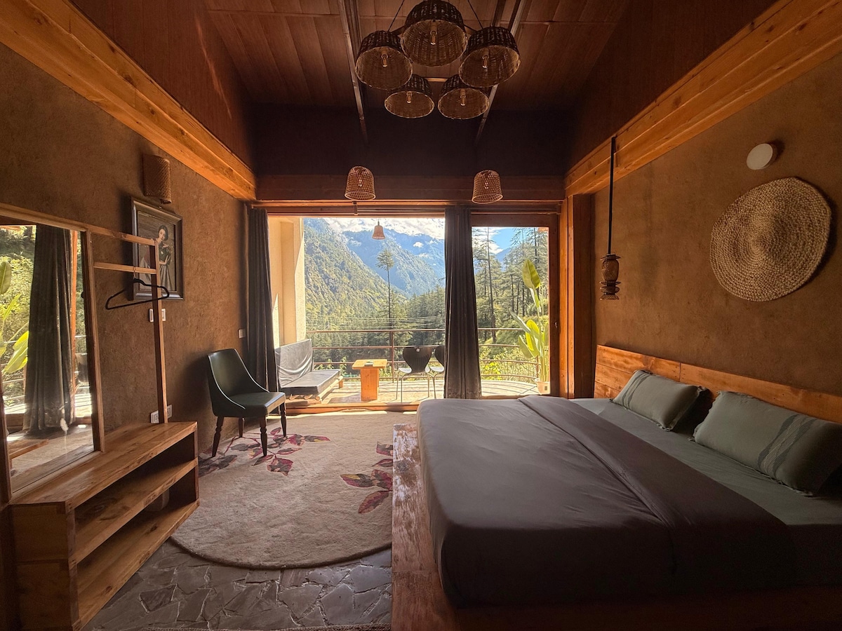 Luksuriøst trætopshotel i Deohari/Sainj-dalen: Oplev naturens magi! Forkæl dig selv med et mindeværdigt ophold i vores smukke trætopshus beliggende i den fredfyldte dal Deohari/Sainj. Vågn op til en betagende udsigt over sneklædte gletsjere fra din hyggelige, luksuriøse seng, eller tag på eventyr for at udforske fascinerende vandreture, der fører til bjerge, vandfald og enge.
