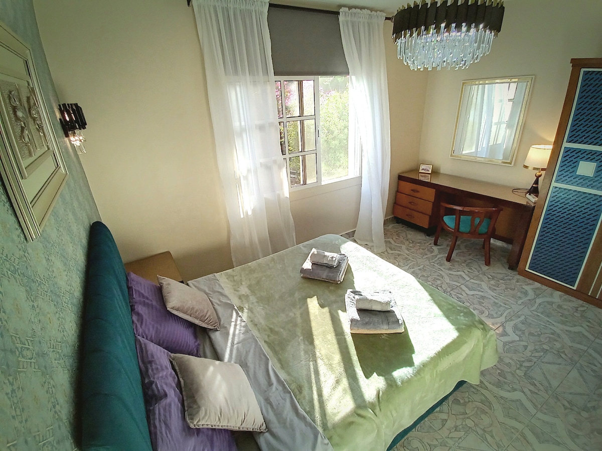 Bo i en stilfuld kuppel i en rolig villa med pool, have og en varm arabisk-modern atmosfære. Alt, hvad du har brug for, er kun få øjeblikke væk: • 800 m fra Haram Hospital • 700 m fra Go Bus Station • 400 m til nærmeste apotek • 350 m til et supermarked • 700 m til en moské • 900 m til en kirke • 1 km til en strand. Nyd at vågne op i et roligt, komfortabelt sted med uovertruffen bekvemmelighed – en central beliggenhed, der er designet til at gøre dit ophold ubesværet og afslappende.