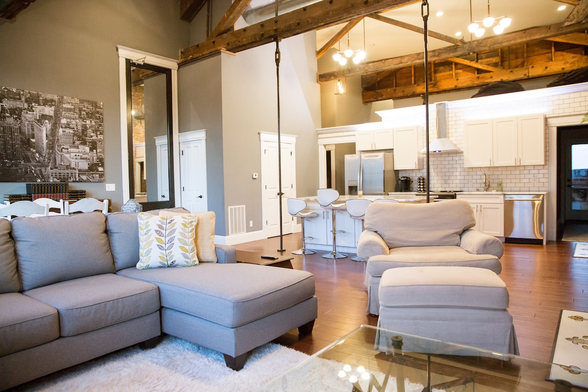 Ultra luksuriøs 2 BR loftslejlighed i centrum, rummelig nok til 5 voksne. Beliggende i det charmerende Downtown Shelbyville, KY, er du i hjertet af bluegrass i nærheden af store destillerier og racerbaner og tæt på kaffebarer, restauranter og barer lige i samme kvarter. Du kan ikke gå galt i byen med dette unikke loft på grund af dets indretning og nærhed til alt. Tæt på alle destillerier på den østlige del af Trail og centralt beliggende for alle destillerier i staten