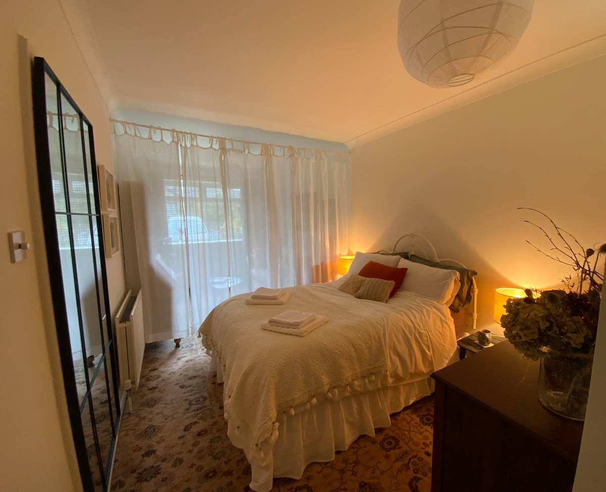 En hyggelig, veludstyret lejlighed til op til 5 gæster i stueetagen i en gammel majsbutikbygning. Kærligt ombygget i 2016. Boligen har egen indgang med parkering til 2 biler, en privat have med romantisk underholdningsområde og direkte adgang til Pingle Cluck, hvor du kan samle æg! Gården har en misundelsesværdig beliggenhed omgivet af marker, men inden for gåafstand til butikker, caféer og restauranter. Vi tager imod hunde, og vi har vores egen private hundepark.