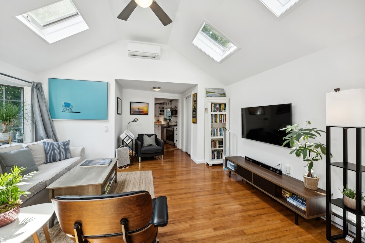 Darling cottage in East Hampton Village. Beliggende i et historisk malerisk nabolag med træer. Nem gåtur til butikkerne Newtown Lane og Main Street. (1/2 mile). Klassisk atmosfære. Meget komfortabel, lys og ren. Et perfekt sted at nyde East Hampton og det omkringliggende område. Fuldt renoveret (2019).