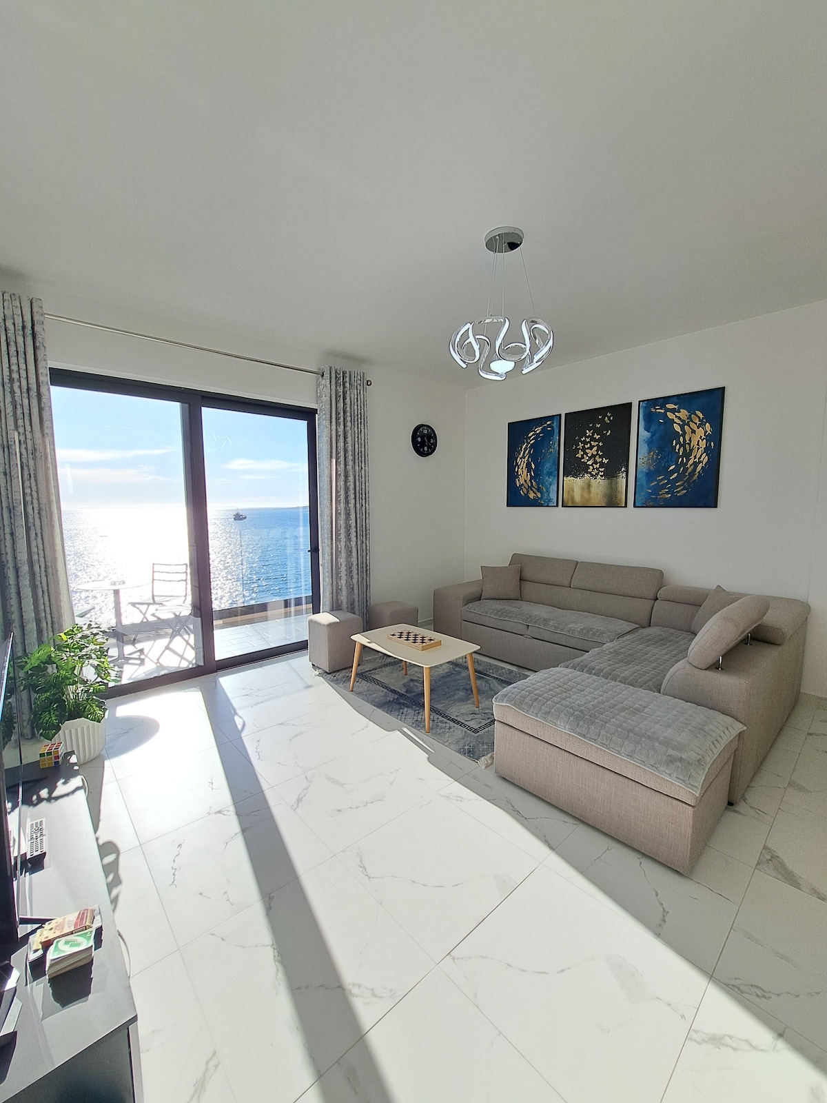 "Luxury Beachfront Oasis" inviterer dig til et drømmeophold i Saranda, hvor boligen er omgivet af enestående havudsigt. Hvert værelse i denne 65 kvm store lejlighed er et vidnesbyrd om moderne luksus, der er designet til at bade dig i sollys og ro.
