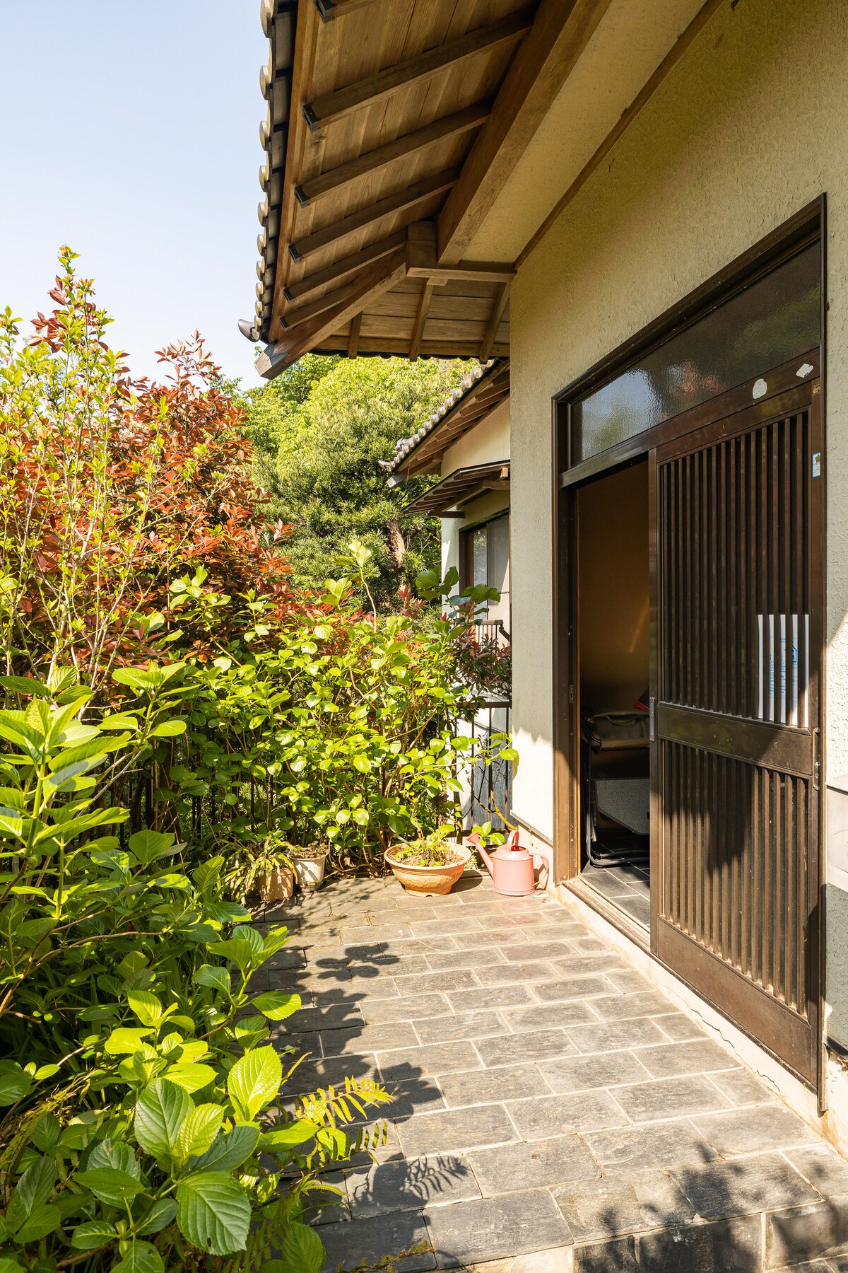 Vores hytte ligger på en bakke på den sydlige spids af Izu-halvøen. Den er omgivet af frodige skove, bjerge og vores frugt- og grøntsagshaver med en smuk udsigt over Stillehavet. Hytten er velegnet til længerevarende ophold. Denne rolige bolig ville være et dejligt fristed for folk, der er interesserede i landets livsstil, eller dem, der leder efter en afsondret ramme til at arbejde, fokusere på kreative aktiviteter eller nyde en rolig ferie uden forstyrrelser.