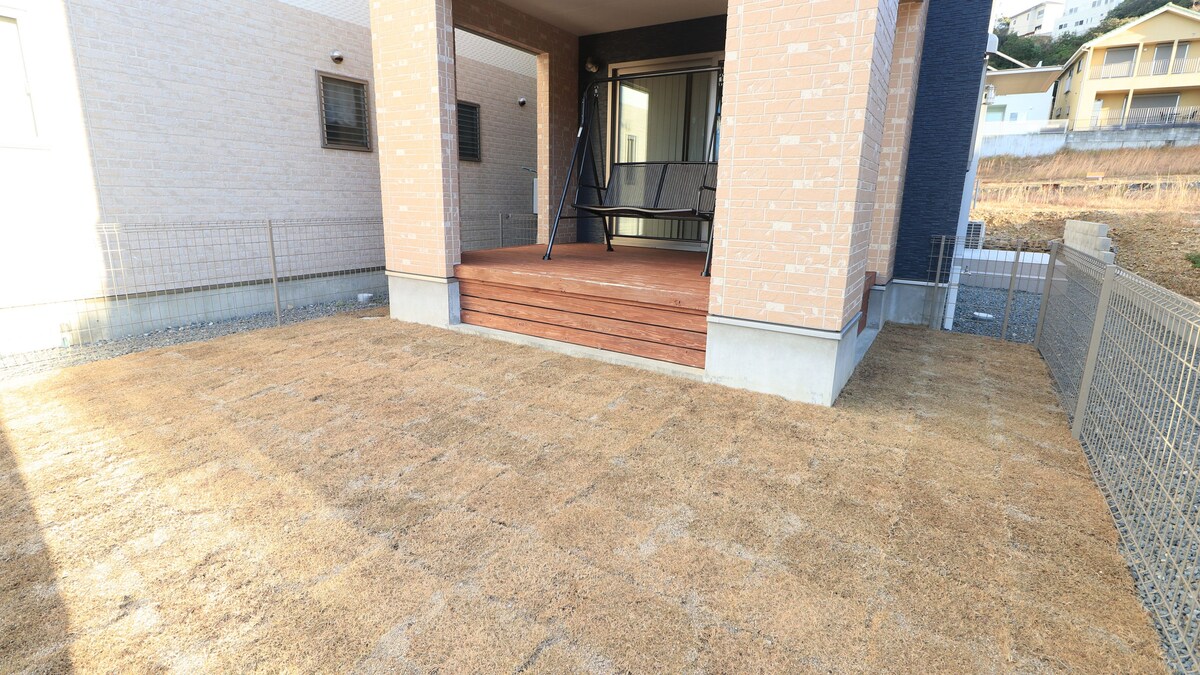 Natural Grass Dog Run × Ocean-View Covered BBQ × Natural Hot Spring A private villa with a 25㎡ fenced dog run — perfect for small to medium-sized dogs to play safely and freely. Enjoy a seaside BBQ under a covered deck, then unwind in a natural hot spring to end the day in comfort. With a secure, fenced garden, even medium-sized dogs can enjoy the space with peace of mind. Perched in a scenic coastal town, this “second home” offers a relaxing holiday for you and your beloved dog.