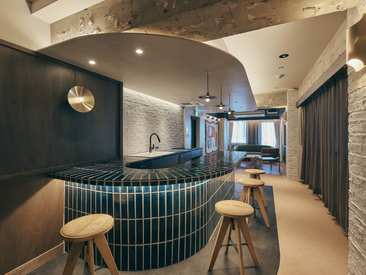 illi Lay Shibuya-Ebisu er indpakket i blanke fliser og centreret omkring et slående U-formet køkken, og det er et sted, der inviterer til sammenkomster. Det er et sted, hvor samtaler flyder let over fælles måltider, hvor teksturer og farver blandes for at skabe et rum fuld af stille dybde og karakter. Beliggende i Ebisu - Tokyos ubesværet smarte kvarter, hvor raffinement møder jordnær charme - du har nem adgang til byen og en fredelig, design-fremadgående flugt at vende tilbage til.