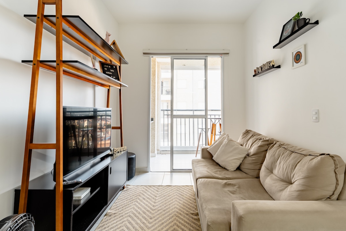 Hyggelig lejlighed designet til dit velbefindende og komfort og kun 5 minutter fra det centrale Taubaté. Mindre end 400 m fra supermarked, lotteri, vaskeri, bagerier, apoteker, tankstation og den største kommunale park, som du kan bruge til at dyrke sport, gå en tur eller bare til en gåtur. For at fremme en behagelig oplevelse tilbyder vi Netflix-streaming, Amazon Prime, Vivo fiberoptisk internet, desinficeret sengetøj og håndklæder, Black-out gardiner.