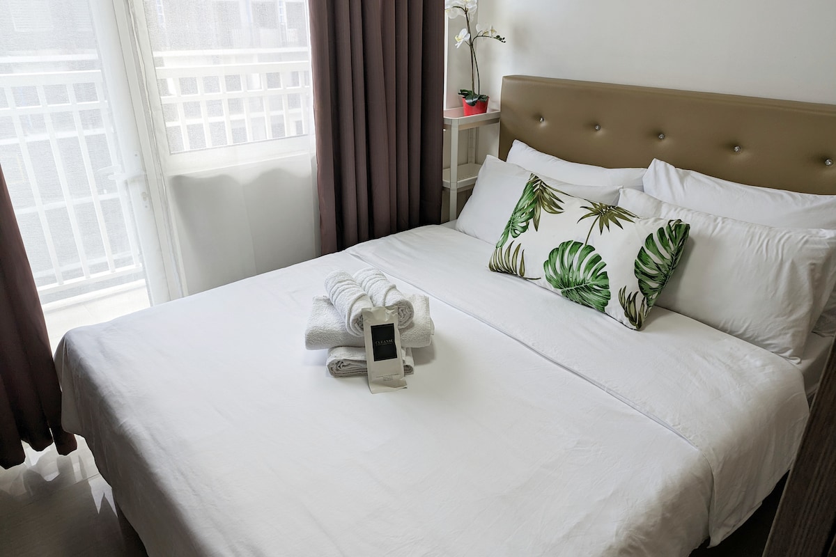 Hyggelig 1BR lejlighed med balkon | 200 Mbps wi-fi | Resortstil Bo i en fuldt møbleret, airconditioneret lejlighed på 26 kvm med en privat balkon, der tilbyder komfort, privatliv og en hjemlig stemning til en god pris. Få 200 Mbps højhastighedsinternet, der er perfekt til fjernarbejde, videoopkald, streaming og onlineopgaver. Beliggende i et Mall of Asia CBD med en resort-stil stemning, er dette sted ideelt for par, solorejsende (på fritid eller forretning), eller små familier, der leder efter et afslappende, men produktivt ophold.