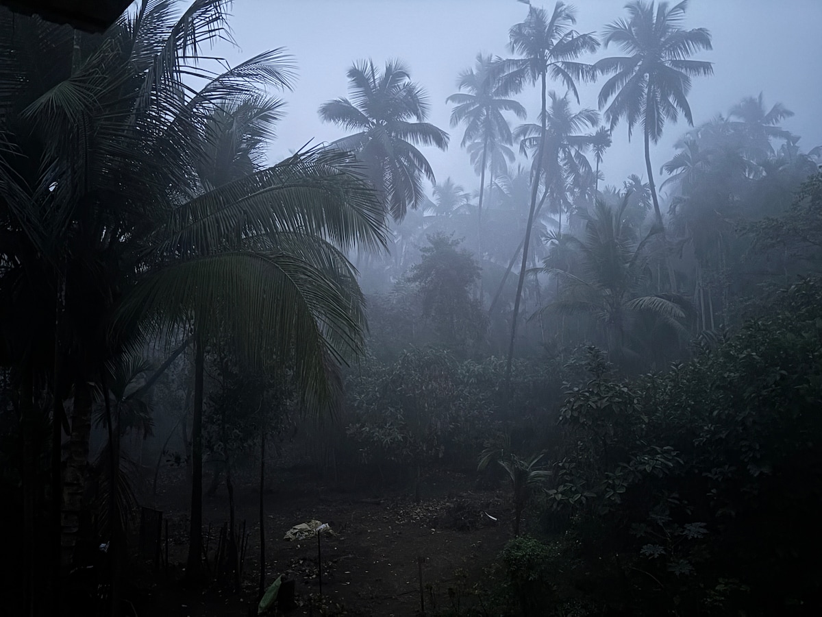*Familier, blandede vennegrupper foretrækkes* *Alkoholforbrug er ikke tilladt* Boligareal 480 kvadratfod Samlet grundareal 10.000 kvadratfod Huset er en SUITE MED TO VÆRELSER. Soveværelse med aircondition, stue uden aircondition, sammenkoblet, ingen dør mellem to værelser. Vestligt toilet og badeværelse, gejser – varmt vand til rådighed døgnet rundt. Badeværelse, toilet og håndvask er alle tre separate og inde i huset. Hus omgivet af kokosnødder, bælgfrugter, banan, chikoo og marmeladetræer. Bag ved huset. Et ægte Kokan-hus