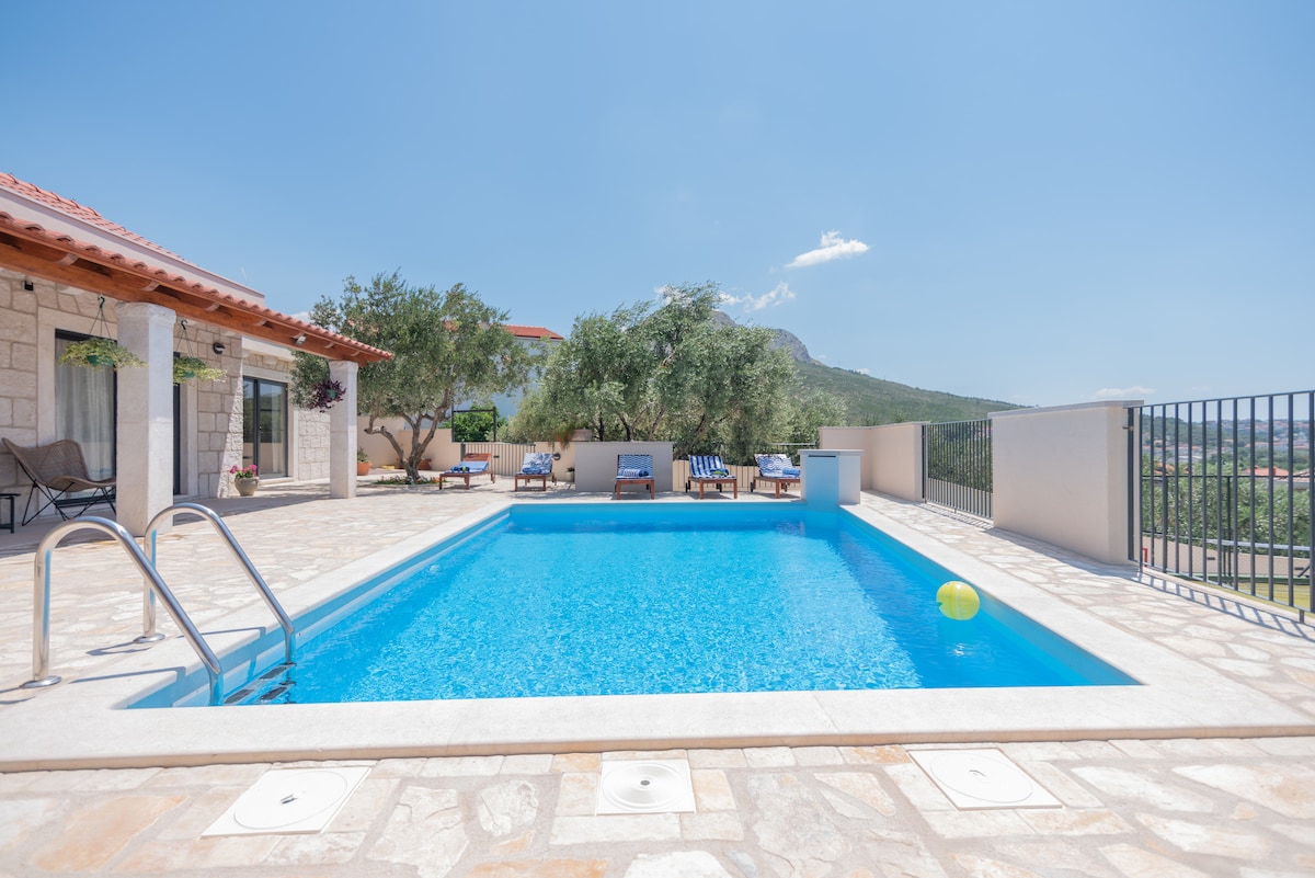 Dette helt nye hus, der blev bygget i juni 2022, er en fornøjelse at se på! Det har plads til 5 personer og tilbyder en 25 kvadratmeter swimmingpool og en jacuzzi. Du kan prale af dine grillfærdigheder på den udvendige terrasse eller vise verden, hvor god du er til at spille FIFA på PS5 inde i huset. Til de regnfulde nætter anbefaler vi Netflix og afslapning på vores 65" tv. Beliggende i et roligt kvarter 20 minutter i bil fra det travle Split. Er du klar til at være vores første gæster?