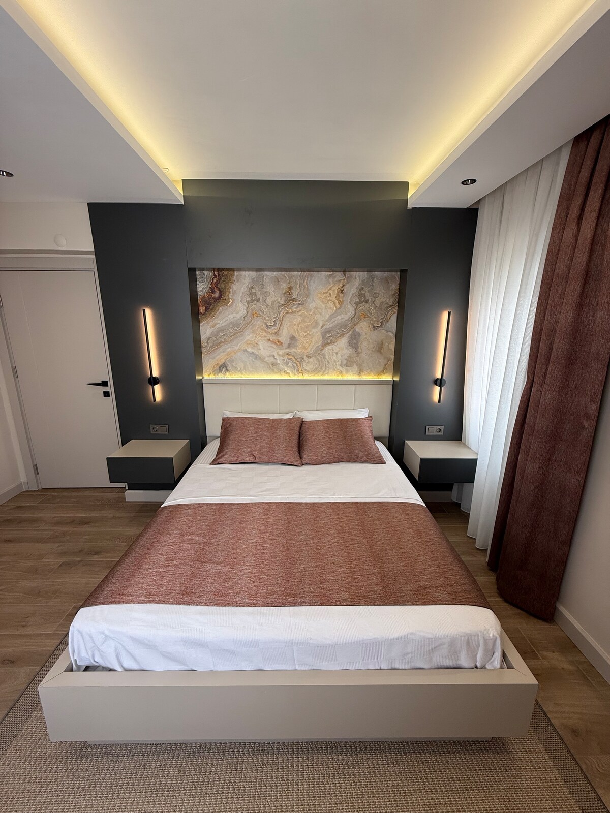 Enjoy a peaceful stay in our modern 2-bedroom apartment in central Side. The beach is just 800 m away, and restaurants, cafés, the seaside promenade, and Side Ancient City are all within a few minutes’ walk. Set on a quiet street, the home also features a relaxing garden with a BBQ, and it’s pet-friendly Highlights: • 800 m to the beach • Walk to restaurants & Side Ancient City • Free Parking • Pet-friendly • Garden with BBQ • Clean, modern 2BR comfort