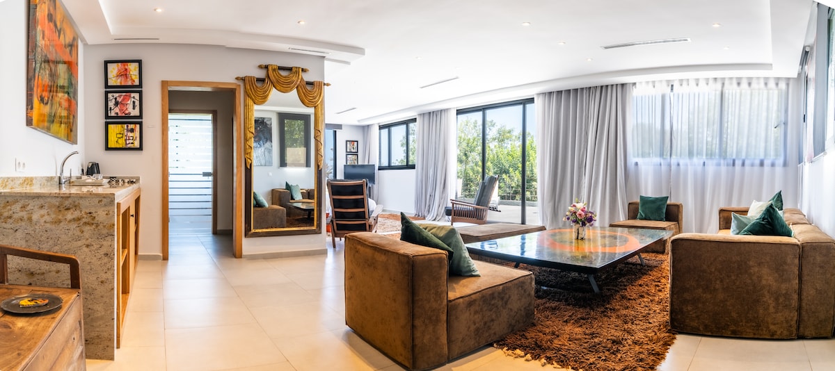 Magnifique villa avec ses 3000 mètres carrés et sa piscine privée. Les 3 suites avec douches privées offrent une intimité confortable, et le salon marocain et le séjour sont des espaces de détente agréables. La climatisation ajoute certainement au confort de la villa. Louée uniquement pour les familles