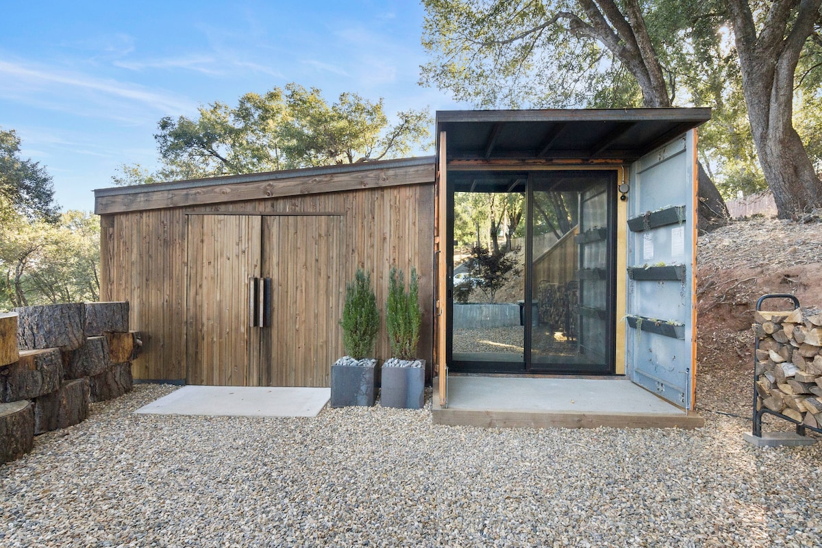 Escape to a modern, beautifully designed container cabin tucked among the tall trees of Pioneer. This peaceful retreat offers total privacy, clean modern comfort, and a cozy atmosphere perfect for couples, solo travelers, and anyone needing a quiet reset. Enjoy morning coffee in your private sunroom, evenings by the fire pit, and star‑filled skies you simply can’t get in the city.