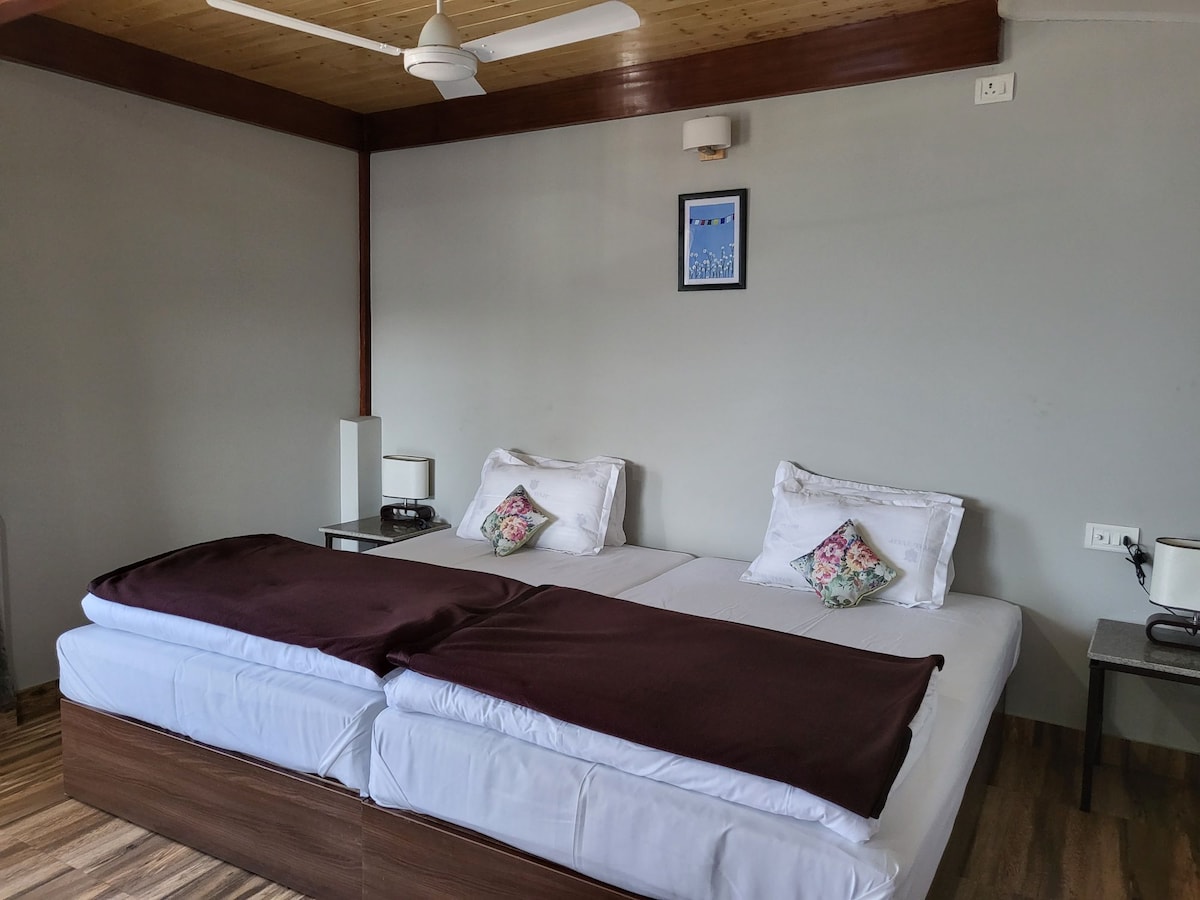 Oplev Sikkim fra vores 3BR-hjemmeopholdslejlighed! Nyd en enestående udsigt over den snedækkede Himalaya direkte fra din bolig. Perfekt til familier/grupper. Inkluderer 24-timers strømforsyning og wi-fi. Din ideelle base for afslapning i Sikkim-bjergene.