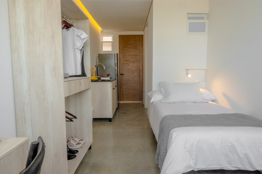 Microliving: Små, funktionelle erhvervslejligheder. Med fokus på sundhed, komfort og energibesparelse. Kreative steder: Fællesområder og udendørsaktiviteter. Voksende tendens i Mexico og globalt. Vi tager imod jobansøgninger med månedlige boligplaner Wi-Fi, lukket overvågningskredsløb i hele bygningen og fællesområder. OMRÅDET ER ENDNU IKKE ASFALTERET, MEN DET ER TILGÆNGELIGT MED BIL, CYKEL (INKLUDERET) ELLER TIL FODS