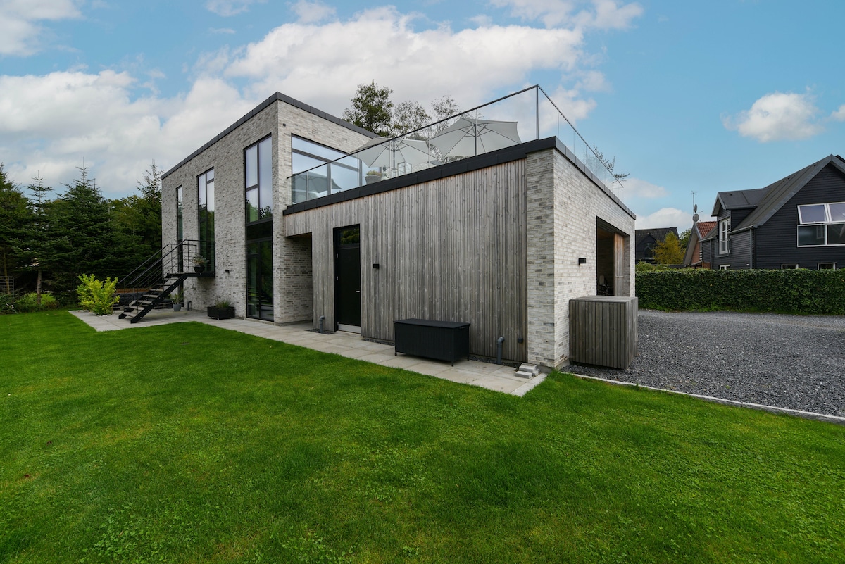 Ny funkisvilla beliggende ved søerne i Sejs-Svejbæk. Med privat bådebro og terrasse ved vandet, hvor der er mulighed for at bade, søsætte kajakkerne (gratis udlån) eller sejle på paddleboard. Har du medbragt en båd, kan den ligge ved broen. Der er plads til seks personer i villaen, der har en 60 kvadratmeter tagterrasse med udsigt over Sejs-snævringen, hvor verdens ældste hjuldamper, Hjejlen, sejler lige forbi. Et helt unikt hus med unik beliggenhed. Dk’s bedste mountainbikespor tæt på.