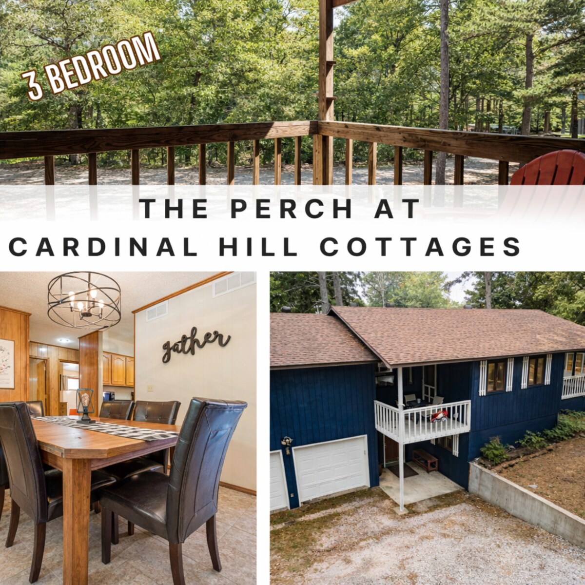 Beliggende på et charmerende, skovklædt, retreat med individuelle hytter og et hovedhus. Perfekt til par, familier, genforeninger eller grupper, der rejser sammen. Vi er 1,6 km fra den berømte Silver Dollar City! "The Perch" tilbyder en blanding af afslapning og udendørs spænding. Du kan slappe af på terrassen, som tilbyder en rolig udsigt over smukke træer i det skovklædte retreat. Perfekt til at nyde den friske luft, mens du drikker din morgenkaffe eller nyder et glas vin om aftenen.