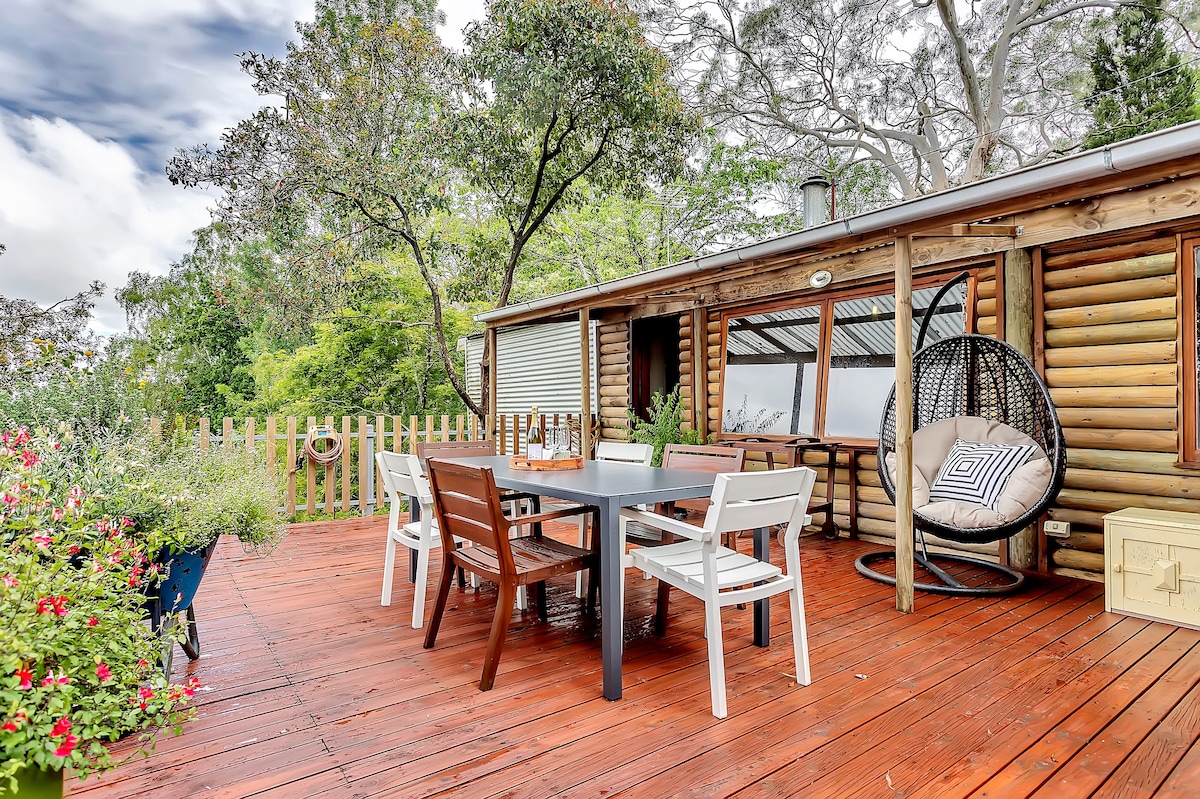 Vågn op til fuglesang i den rustikke Gumtree Cottage.