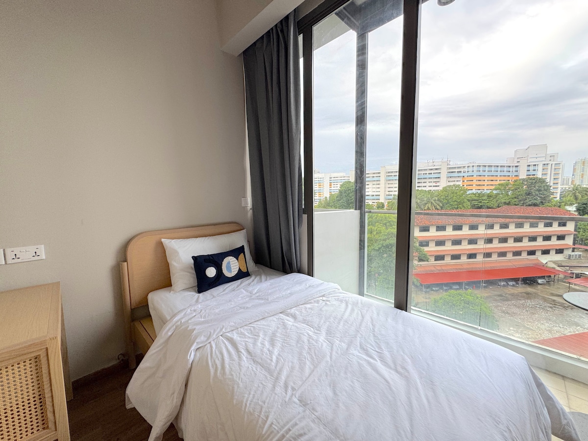 Licenseret serviceret lejlighed i Novena drives af K&C Company. 7-8 minutters gang til Novena MRT. Executive et soveværelse 6 Alle enheder har privat soveværelse/badeværelse/køkken. En queensize-seng i hvert rum. Forbereder kun ekstra enkeltseng og senge, hvis der er mere end to gæster med ekstra omkostninger. Ingen 24 timer på stedet personale. Kontaktløs indtjekning efter kl. 18.00. Der tilbydes gratis rengøring tre gange om ugen. Registrer pas/NRIC hos os, når du tjekker ind.