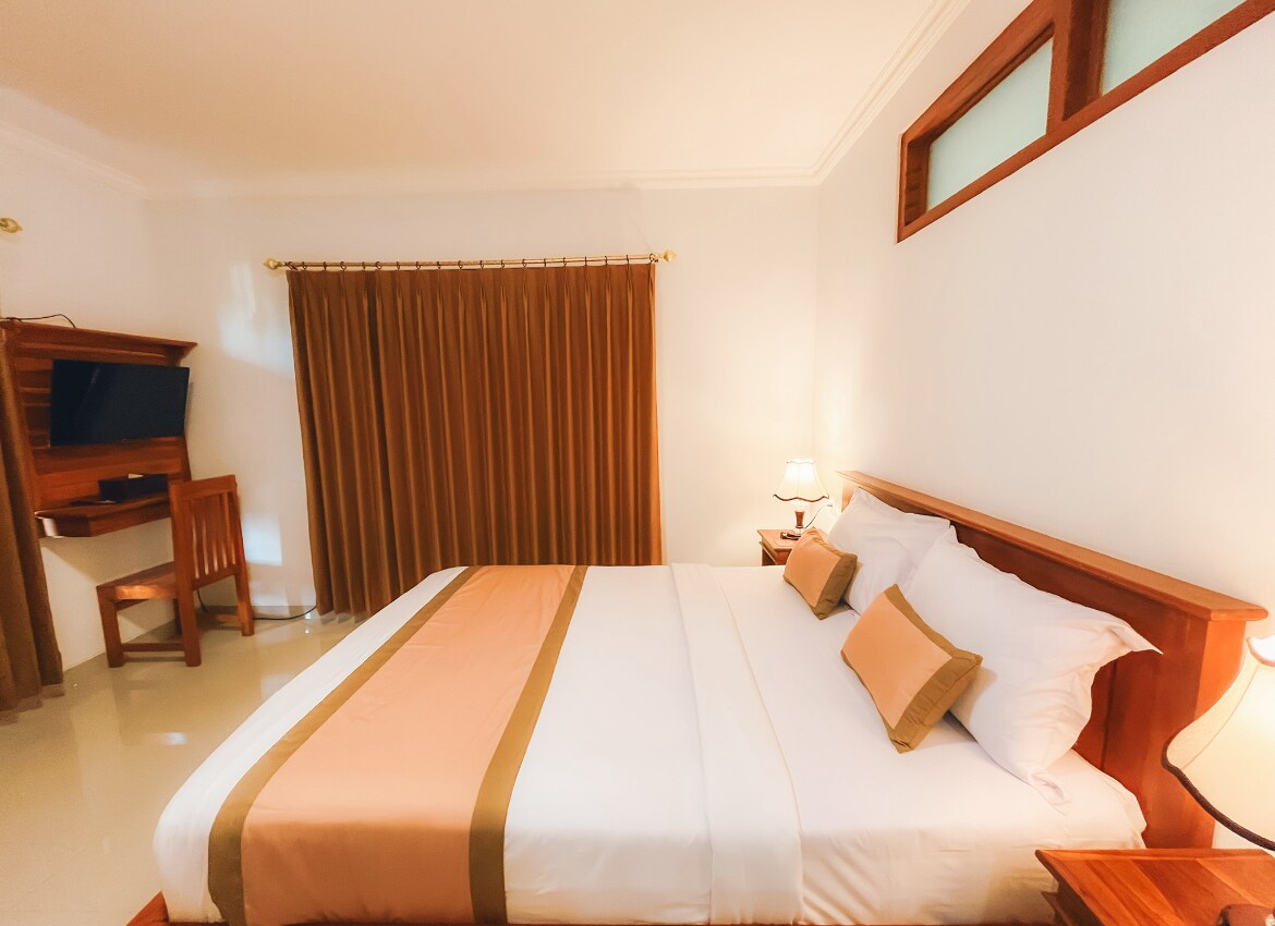 Værelset er en del af et veladministreret resort foran Lovina Beach med en masse faciliteter såsom SPA, restaurant, speciøst haveområde, swimmingpool ved stranden, lotusdamme, fitnesscenter, lobby og lounge, parkeringsplads, vandsport. Resortet tilbyder forskellige gæsteaktiviteter, hvor de kan bruge sin tid på under opholdet som følger: **GÆSTEAKTIVITETER** - Se delfiner : en magisk rejse for at se delfiner i deres naturlige habitat. - Bananbåd - Jetski - Fiskeri - Romantisk middag ved stranden - SPA