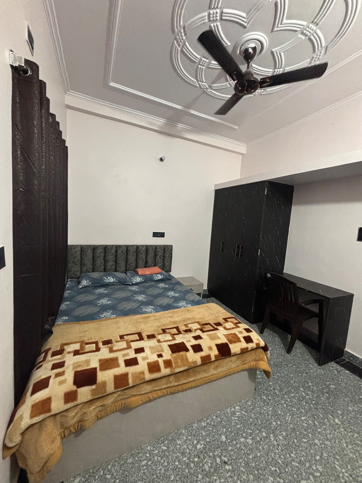 Step into a warm, inviting space on the ground floor, right at the front of the house. This cozy room features classic wooden touches, soft lighting, and a peaceful ambiance—perfect for unwinding after a busy day. Located in the heart of Patna, it’s ideal for solo travelers, couples, family or short getaways, offering a serene, homely retreat where comfort and convenience meet.