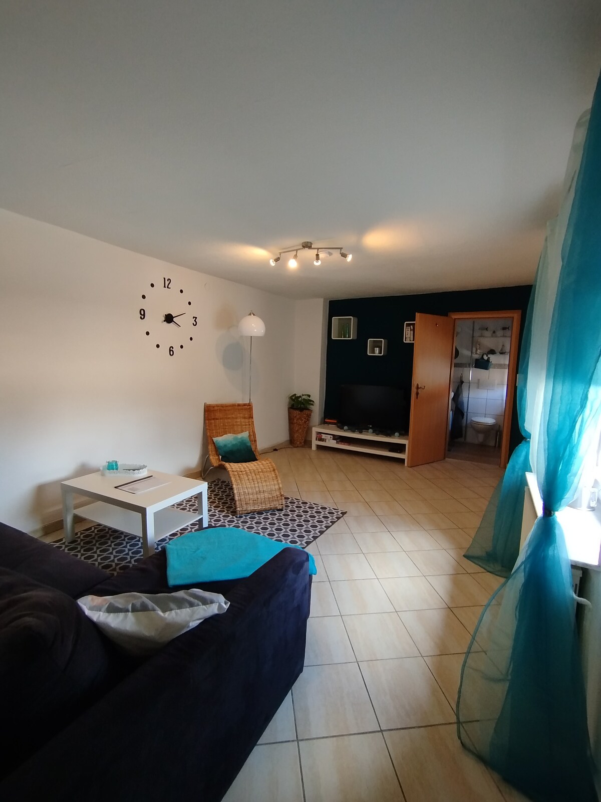Rummelig lejlighed med 65m² til to personer(kort. 2 nætter 3 pers), med stue (80 cm SATELLIT-TV, Wi-Fi) inkl. Brændeovn (træ medfølger), køkken, badeværelse med regnbruser, badekar og wama. Tilgængelighed: Til motorvej A45 (4 km) er der en togstation i landsbyen. Lejligheden ligger i kælderen i et fritliggende familiehus med have, herunder separat adgang via den private terrasse. Der er et grillområde, bord, stole. En barneseng kan være til rådighed efter anmodning.