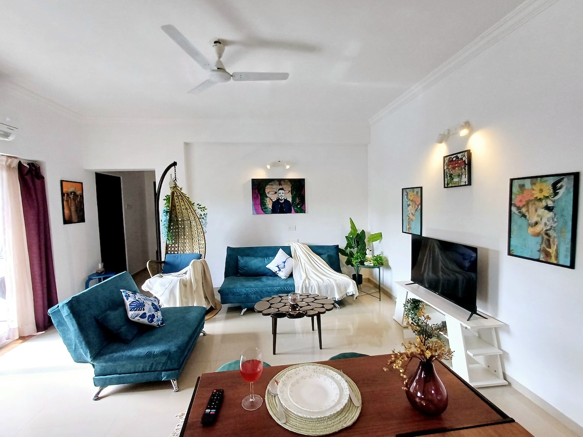 🌿Kp'Aloria by @vimovacation: Beautifully adorned apt with alluring & minimalist aesthetics featuring pops of color!🎨 ♥ Dive into the POOL, swing in the park & feel safe in a 24/7 gated soc with ample Parking ♥ Recharge your batteries with nature vibes & comfy amenities. 🚗Perfectly poised to access Goa's hotspots - Anjuna, Assagao, Baga, Vagator, Morjim 🍹 Thalassa 🍸 House of Chapora 🎶 Darlings Bar, Boiler Maker: 3 km 🏖️Uddo/Anjuna/Vagator/Morijim Beaches: 2-6km