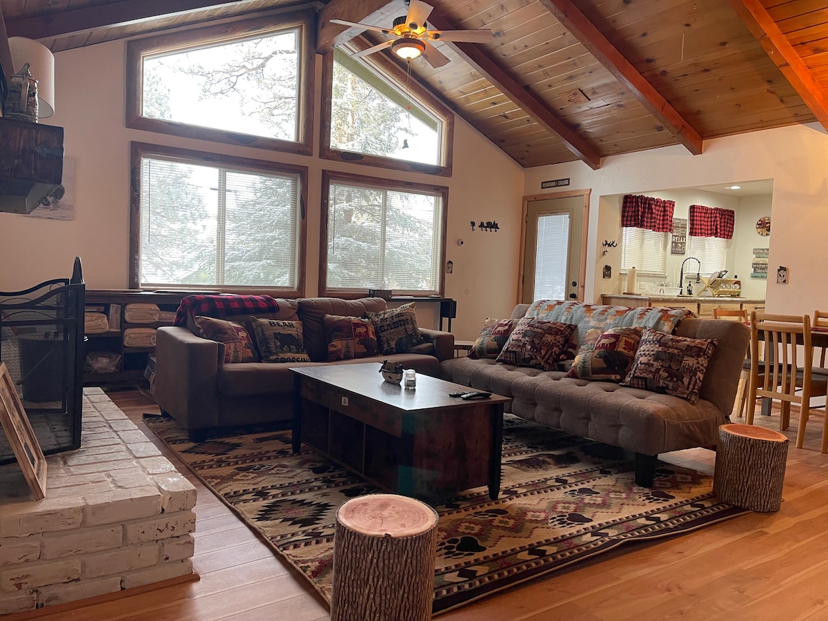 Det er tid til at booke snedage i Alpine Villa! Vi er et hundevenligt, fransk-inspireret hjem med en flad indkørsel (ingen skrånende indkørsler, man kan glide på). Vi er et nyrenoveret hjem med 3 soveværelser og 2 badeværelser i hjertet af Big Bear Lake – i gåafstand til landsbyen og søen. Snow Summit ligger 2,1 kilometer væk, og der er en kort køretur til zoologisk have og golfbane. Nyd en kæmpe åben stue med 75" tv, og put dig ved en af de to pejse i dette varme, træagtige hjem, eller slap af udenfor på en af de to store terrasser