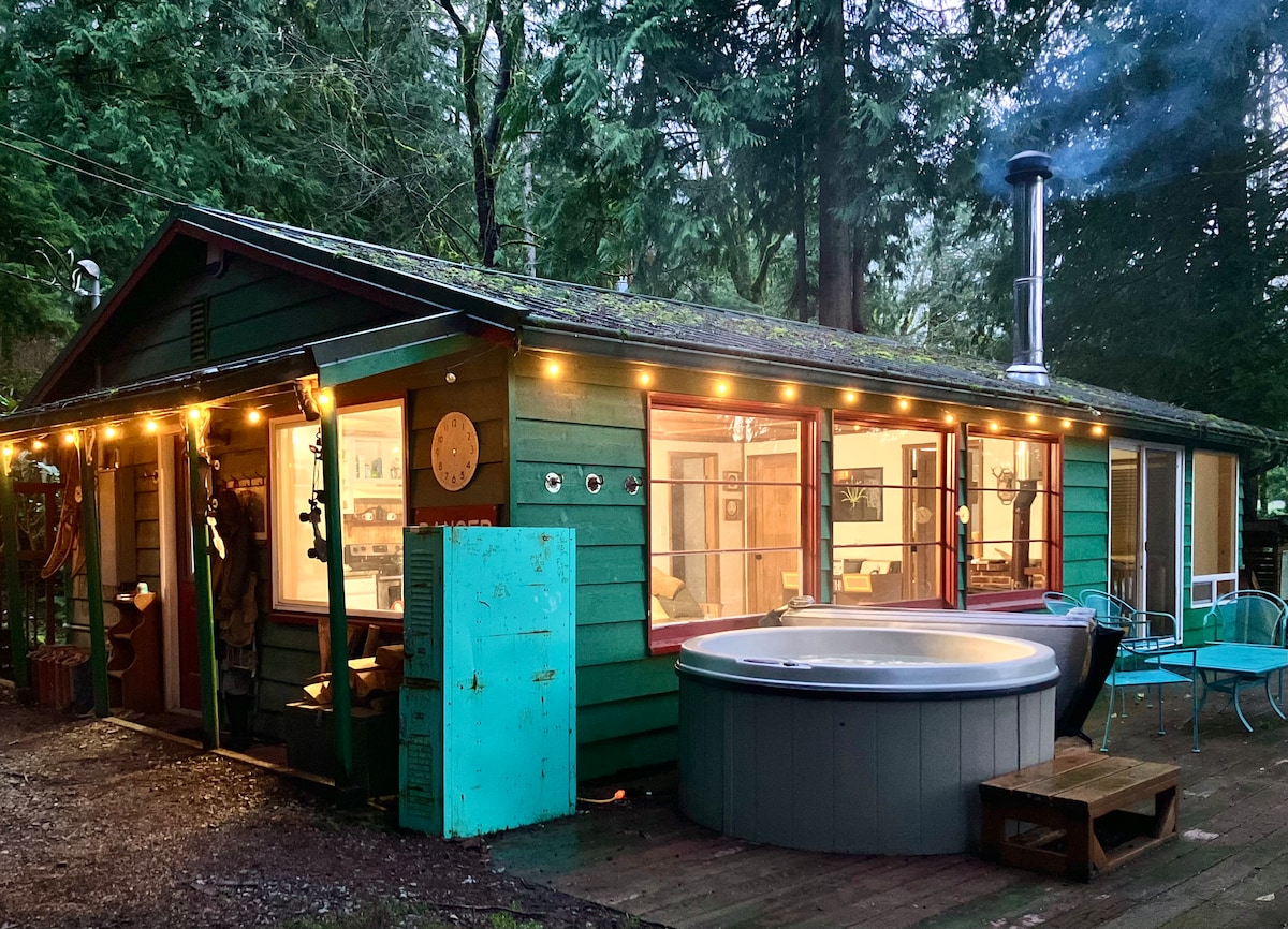 *NY SAUNA* Træd ind i charmen ved Dancing Bear Cabin! Fordyb dig i denne stilfulde ferieboligs charme. Nyd udsigten over floden og de fjerne bjerge fra to hyggelige soveværelser og en rummelig stue. Nyd det private udendørsområde, der er komplet med en overdækket pejs, der er ideel til at nyde det smukke Pacific Northwest. Start dagen i spabadet, se solen stå op, og slap af indendørs med filmaften på en stor skærm. I Dancing Bear Cabin er pelsvenner hjerteligt velkomne til en dejlig ferie.