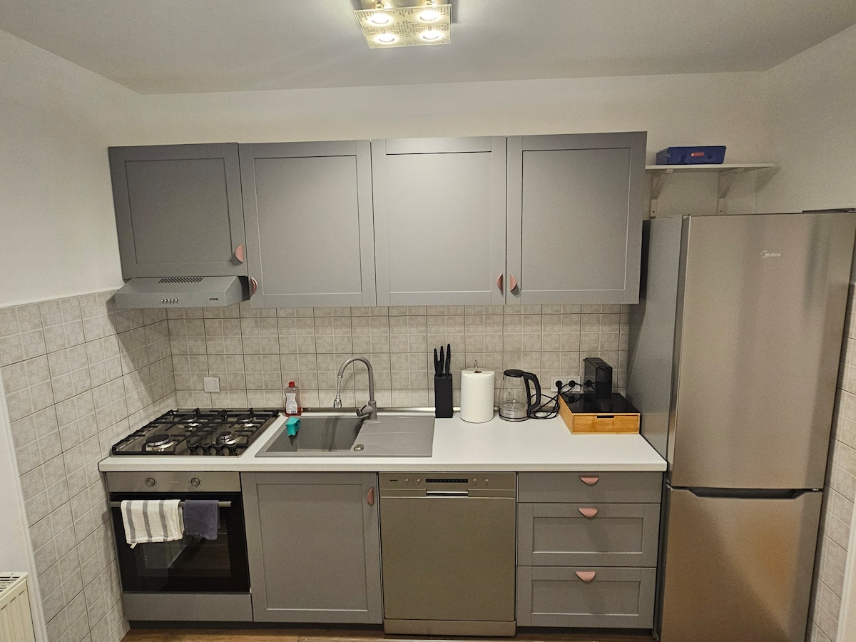 Fremragende udstyret, med alle de nødvendige faciliteter for et behageligt ophold. Lejligheden har en stue med en hjørnesofa, et fuldt udstyret køkken, en balkon, et soveværelse med en stor dobbeltseng og et fuldt udstyret badeværelse. Lejligheden har optisk internet og tv med over 3000 programmer, film og serier. For at vores gæster skal føle sig hjemme, sørger vi for fuld komfort og sikkerhed under opholdet i vores bolig. Velkommen til alle, vi glæder os til at byde jer velkommen!