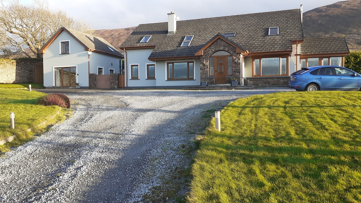 Dette hus ligger ved porten til Dingle-halvøen på den verdensberømte Wild Atlantic Way. Denne toetagers, nybyggede ejendom med aircondition ligger ved foden af Slieve Mish-bjergene i gåafstand fra Boolteens Village. Dette hus har 2 soveværelser ovenpå og plads til 6 personer. Nedenunder er der åben planløsning med et fuldt udstyret køkken, spisestue og stue. Der er også private udendørs siddepladser og fiberoptisk wi-fi.