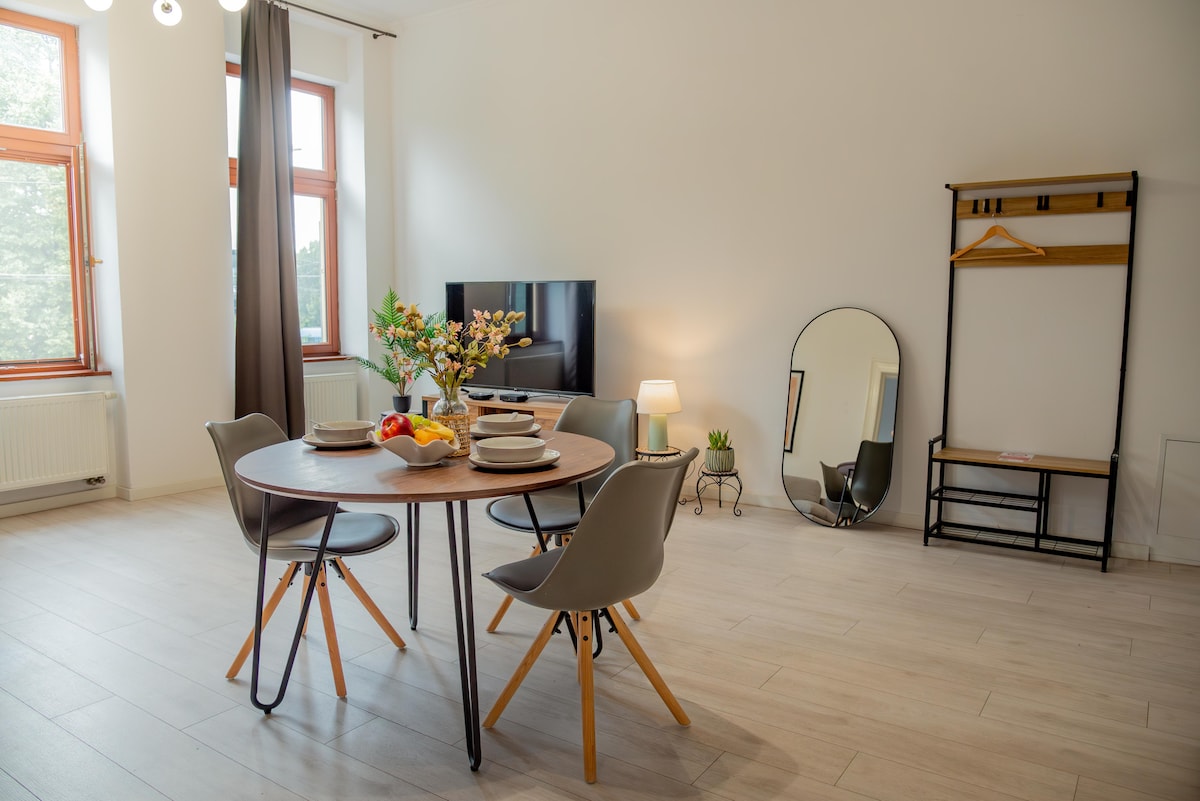 Træd ind i en stilfuld skandinavisk lejlighed, der blander historisk charme med moderne komfort. Lejligheden ligger kun 2 minutters gang fra hovedgaden og 6 minutter fra den ikoniske Skt. Elisabeths katedral, så du er midt i hjertet af Košice. Omgivet af caféer, restauranter og kulturelle seværdigheder. Uanset om I er på besøg som par, med venner eller med familie, er dette hyggelige, men rummelige tilflugtssted designet til et behageligt og afslappende ophold.
