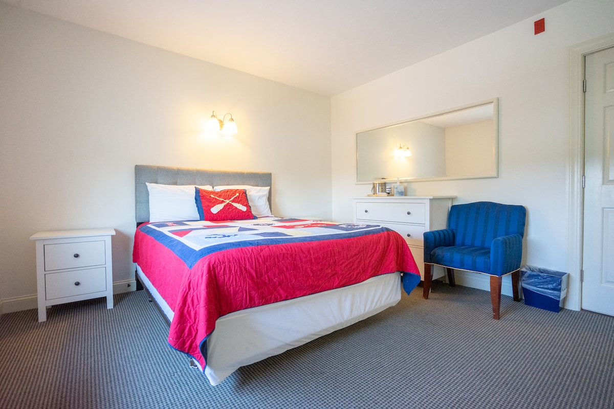 Hyggeligt soveværelse med queensize-dobbeltseng på Newport/Middletown-linjen med parkering og restaurant og bar med fuld service på første sal, dobbelt pejs. Hvert værelse er fuldt udstyret med tv, minikøleskab, aircondition, badeværelse, skab og ekstra sengetøj. Spis i, eller bestil roomservice i restaurantens åbningstider. Fuldt udstyret bar giver dig mulighed for at nyde drikkevarer i restauranten eller på dit værelse. Rummelig og lys. Privat kro med 8 soveværelser, der er tilgængelig for hele kro- og restaurantblokken med OPHOLD I Newport Vacation Management.