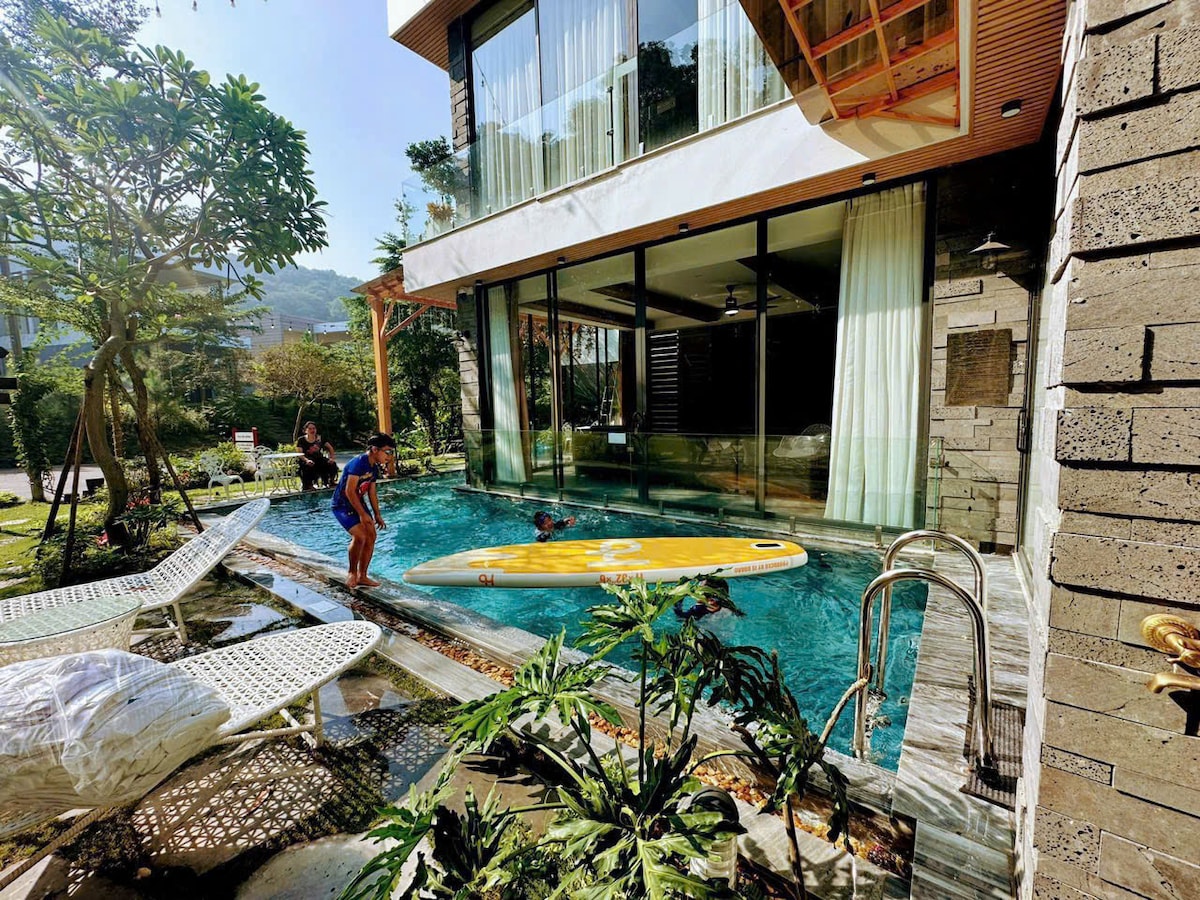 Collie Villa F3.9, Venus Resort by Flamingo: tilhører Ngoc Thanh commune, Dai Lai, Vinh Phuc. 🍀 Stor stue med udsigt til poolen og grønne områder 🍀 Privat swimmingpool 03 soveværelser med eget badeværelse; kingsize-dobbeltseng Ekstra pad-yogamåtte Fuldt udstyret med personlige hygiejneprodukter. 🍀 Damprum 🍀 2 cykler, SUP, boldrystning, bi a ,sunkoe truss 🍀 65 tommer tv +wi-fi 🍀 Fuldt udstyret køkken: Bosch elektrisk ovn, LG-køleskab, gryder og pander og skåle og spisepinde induktionskomfur, hot pot. 🍀 Der er grill og picnicbord.