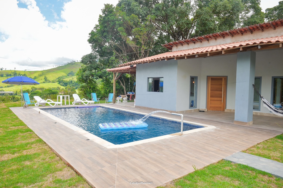 Forestil dig selv ved daggry, omgivet af naturen i Serra da Mantiqueira, mens du drikker kaffe, med din yndlingsbog i hånden, og sidder på balkonen og mærker morgenbrisen og lytter til sangfuglene. Om eftermiddagen kan du på den koloniale grill, tilberede mad til hele familien, have det sjovt i poolen og den opvarmede spabad. Solnedgangen skjuler sig i horisonten mellem bjergene, og som et kunstværk i forvandling løber himmelens farve gennem spektret til den stjerneklar nat på landet.