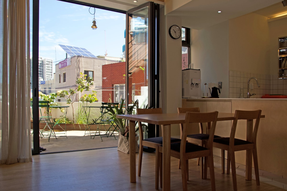 Når du har brug for at komme til kræfter Når du ønsker at tilbringe en lykkelig tid med din elskede Vi vil sørge for, at du får det afslappet og komfortabelt. Om morgenen kan du lytte til lyden af bølgerne og stille og roligt byde solopgangen velkommen Om eftermiddagen kan du nyde en dejlig brunch på terrassen Om aftenen kan du nyde lækker mad, du har købt på det centrale marked, der ligger 5 minutters gang herfra, og tale sammen. Det er drømmende Sokcho, der er fyldt med roen ved havet under hele rejsen.