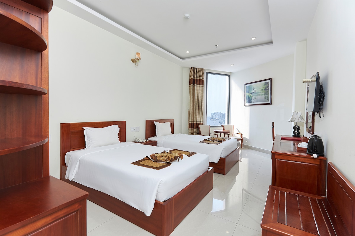 Hyggeligt værelse med store vinduer og udsigt over et luksushotel - 150 m fra My Khe-stranden - stranden, der er stemt ind som den mest attraktive på planeten af Forbes - 2 km fra Dragon Bridge, Han River Bridge, beliggende i det travleste turistområde i Da Nang - An Thuong, så det er tæt på berømte underholdnings- og spisesteder, ekstremt praktisk for dig at udforske Da Nang by - Beliggende på en gade langt fra hovedvejen, så det er meget stille, så du kan sove godt - Udendørs swimmingpool og fitnesscenter på øverste etage