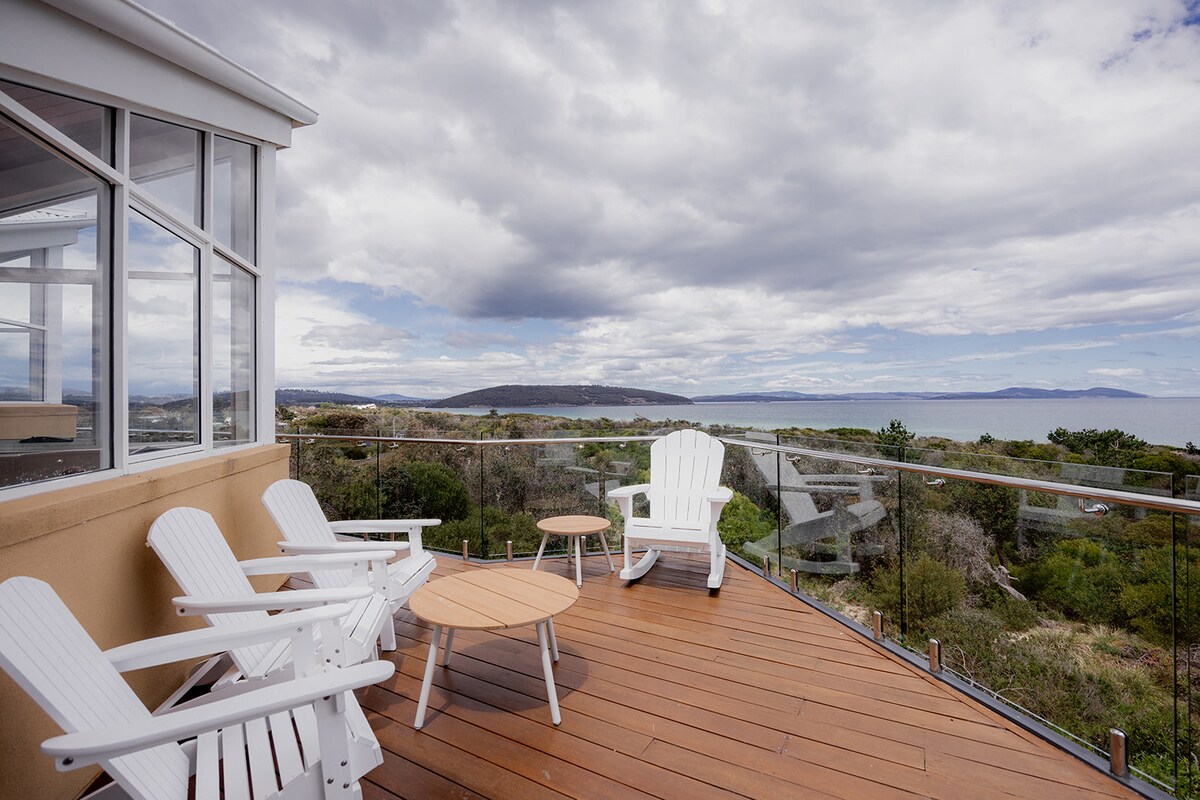 Luksus, fuldstændig privatliv og absolut havfront er dit. Her vil du opleve uafbrudt udsigt over flodmundingen, mens du overvejer mulighederne for at fiske, lave mad i gourmetkøkkenet eller nyde den magiske udsigt over vandet fra kingsize-sengen og opholdsområderne. Vi har en god beliggenhed for dagsture til de nærliggende prisbelønnede Coal River-vingårde, historiske Richmond, Tasman-halvøen, East Coast-strande og meget mere. * Se nedenfor for helikopternyheder.