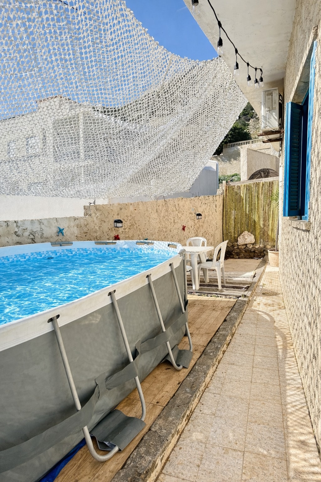 Fordyb dig i roen i et hus med havudsigt fra morgen til aften. Huset består af 2 soveværelser, 1 badeværelse og et udstyret køkken. En terrasse omkring poolen og en have, der går rundt om huset. På taget er der også havemøbler. Du kan parkere på den private parkeringsplads i huset ved at tage en lille skråning. Der er ekstra madrasser til rådighed. Tak, fordi du respekterer vores nabolag. Begivenheder er ikke tilladt.