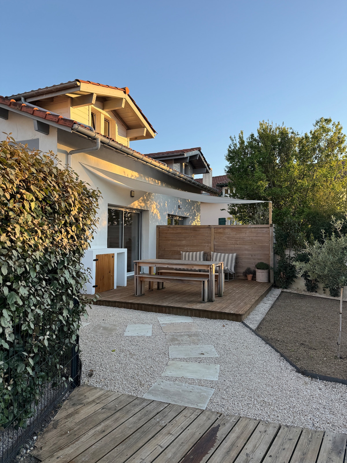Velkommen! Dette er et dejligt byhus, der vil byde dig velkommen til dit ophold. Familievenlig, funktionel og behagelig på to etager, den sydvendte have er perfekt til morgenmad på terrassen, inden du tager til stranden. Huset ligger i et roligt kvarter og kombinerer nærhed til byens centrum og havet, samtidig med at det nyder godt af en fantastisk ro i nabolaget og parkeringsfaciliteter. Adgang til motorvejen, lufthavnen og togstationen 5 minutter væk.