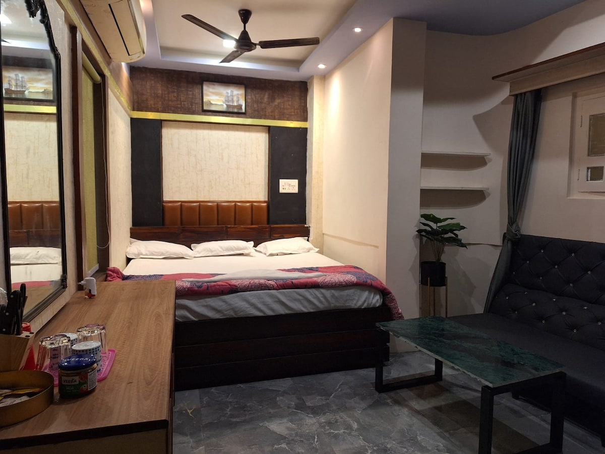 Hyggelig penthouse-studielejlighed nær Netaji Metro Bo i denne rummelige, godt oplyste penthouselejlighed på 3. sal i Annapurna Residency, kun 4 minutters gang fra Netaji Metro, markedet og transportknudepunkter. Den er perfekt til arbejde eller afslapning og har en 6x4 ft projektor, arbejdsområder, benmassageapparat, kropsmassageapparat, fodspa og fitnessudstyr som en yogamåtte, vægte og pull-up bar. Et roligt fristed med alle moderne bekvemmeligheder.