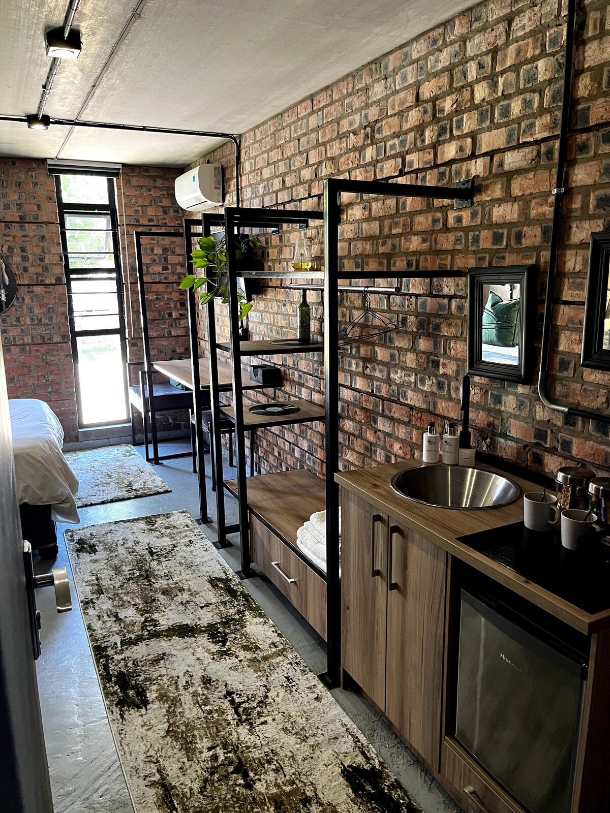 Dette varme og stilfulde værelse på STOEP Boutique Hotel i Kalk Bay er et fredfyldt tilflugtssted ved kysten. Med en queensize-seng med teksturerede puder, en hyggelig læsekrog, der er badet i naturligt lys og jordagtige træoverflader, blander rummet ubesværet komfort med moderne design. Vævede detaljer, moderne kunst og frodige indendørs grønne områder skaber en rolig, indbydende atmosfære - perfekt til afslapning efter en dag med at udforske den charmerende kystlandsby Kalk Bay.