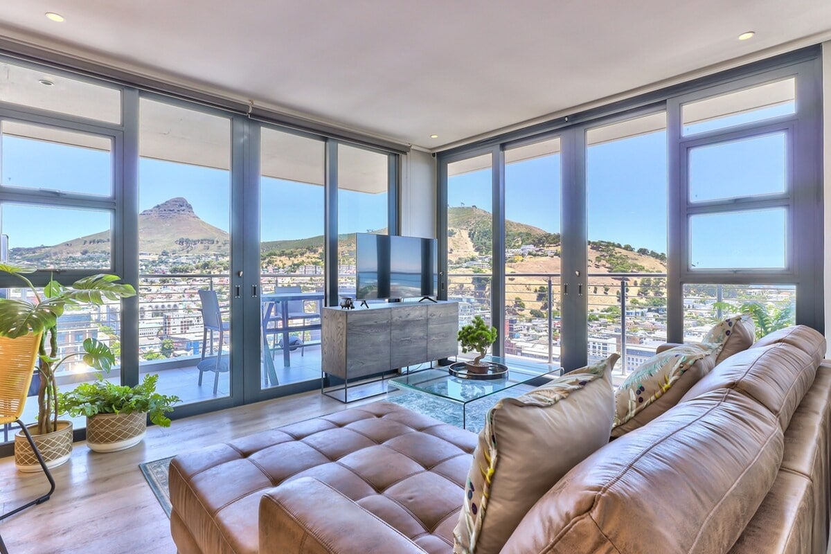 Velkommen til den mest fantastiske udsigt, man kan forestille sig, fra en stilfuld, helt ny og smagfuldt indrettet lejlighed højt oppe i Cape Towns himmel. Nyd det 'sunsational' pooldæk og udendørs fitnesscenter på 27. etage, eller træd blot ud på din helt egen store balkon til morgenmad, mens du nyder den fineste udsigt over Taffelbjerget, den funklende azurblå Atlanterhavet eller Robben Island og Cape Town Stadium. *Ingen strømafbrydelser i denne bygning.