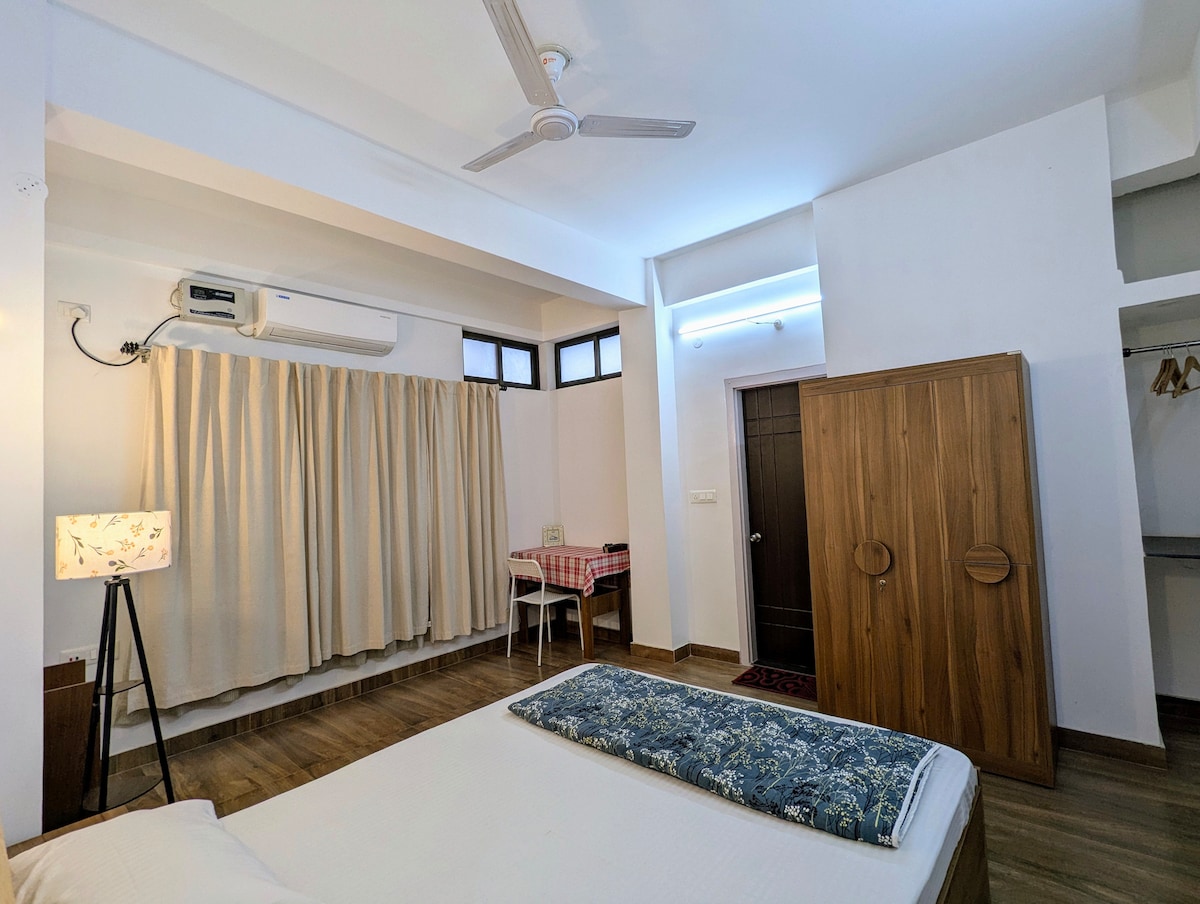 Nyd et stilfuldt ophold i hjertet af Pondicherry. Alt, hvad du har brug for - strande, butikker og restauranter - ligger inden for 5 til 10 minutters gang. Tæt på French Quarter, Promenade Beach, markeder og kulturelle vartegn. Komfort: Højhastigheds-wi-fi, aircondition og et fuldt udstyret køkken. Elsket for design og renhed: Gæsterne sætter pris på den stilfulde indretning og den pletfri bolig. Hjemmebiograf: Nyd filmaftener med projektor og skærm. Central loftslejlighed - perfekt til afslapning efter en dag med udforskning