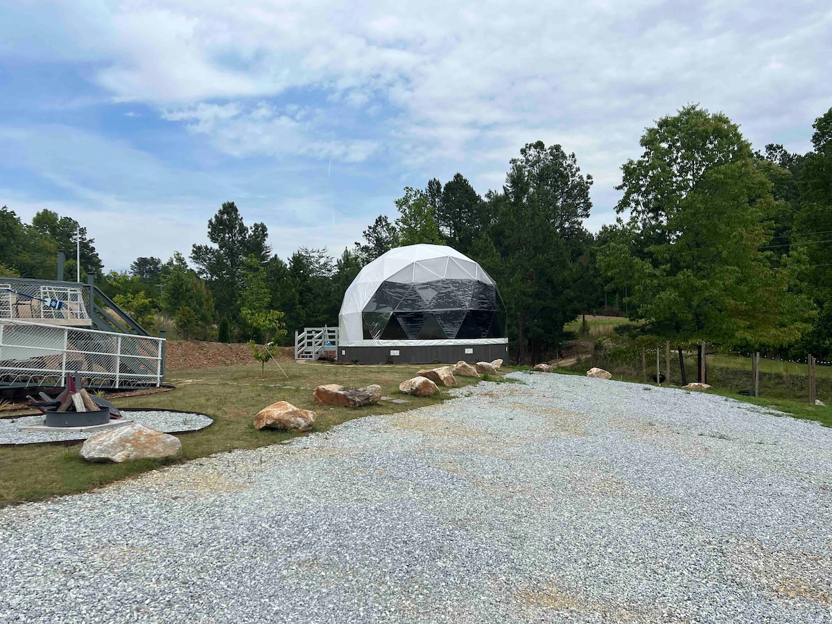 Field Trip is a unique, 23-unit Glampground in Travelers Rest, SC. Alle vores enheder har adgang til vores hytte, badeværelser og omfattende faciliteter. Unit 15 er en rummelig Geo Dome gemt væk i skoven, perfekt til to personer. Har en queensize-seng med mulighed for en ekstra enkeltseng med plads til en ekstra enkeltseng til en maksimal kapacitet på 3 personer. Varme og aircondition, luksuriøst sengetøj, kaffemaskine, opholdsområde, privat udendørs bålplads. *Denne bolig ligger på toppen af en bakke. Gæster skal kunne gå op ad en stejl hældning.