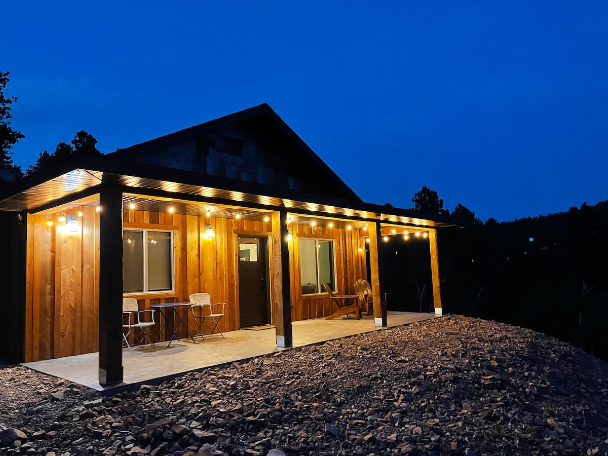 En unik, afsidesliggende, rustik hytte beliggende på 10 hektar Ponderosa-fyrreskov. Nyd morgenkaffe på den solrige, rummelige terrasse, eftermiddagspicnic ved bækken, en hyggelig træild om aftenen og en himmel fuld af stjerner om natten. Kun 12 minutter fra god mad og caféer i Spearfish; 20 minutter til Deadwood. Hytten er bedst for par, familier og grupper af nære venner. Bemærk begrænset privatliv; der er ingen soveværelser med døre, du kan lukke.