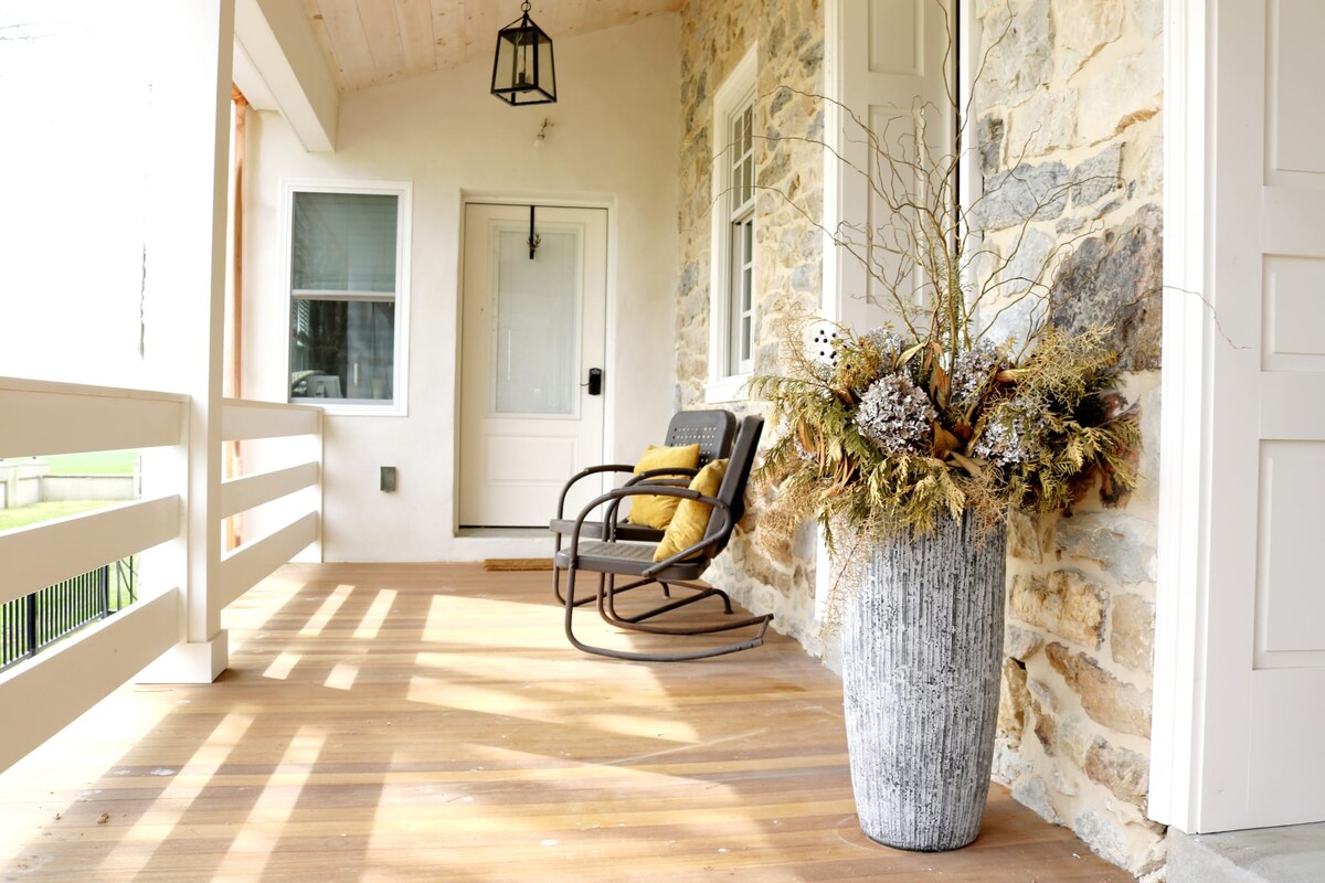 Mens du bor her, kommer du til at køre over en lille bro og forbi en bugtende bæk for at komme til vores historiske stenhus, hvor du bor. Den oprindelige bygning blev bygget i 1758. Ude på landet med Amish-naboer overalt omkring vil du blive glad for de fredelige omgivelser, der er skabt af de små bække, rustikke lader og buggies, der kører forbi på vejen. Ejendommen plejede at være en vingård med sine egne vinmarker. Huset var der, hvor vinbonden boede.